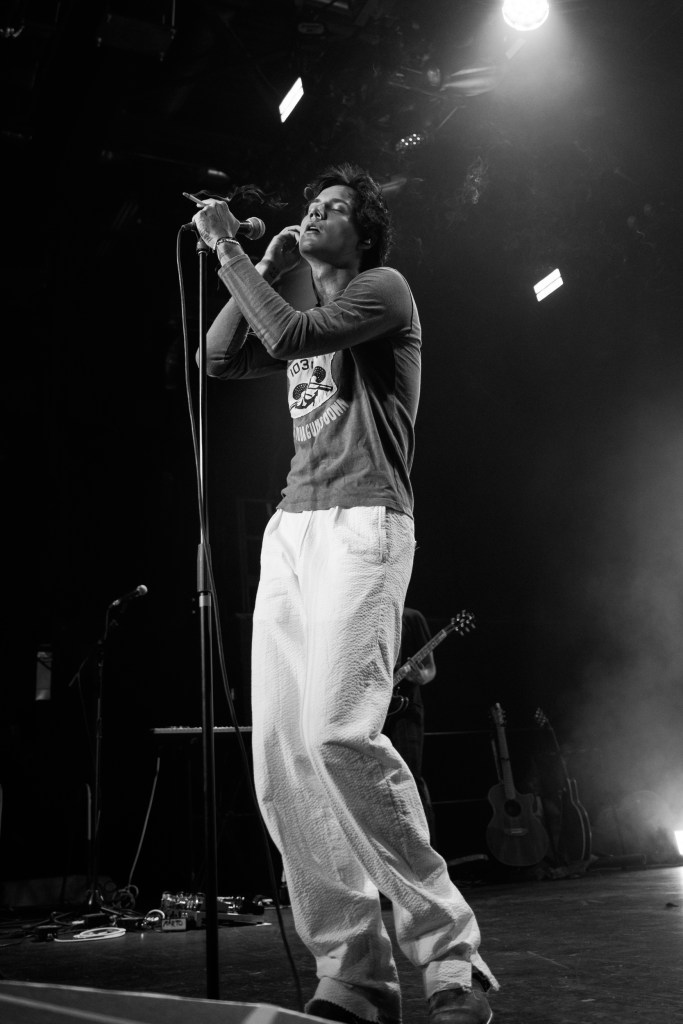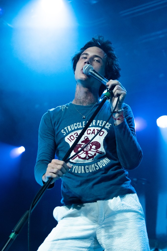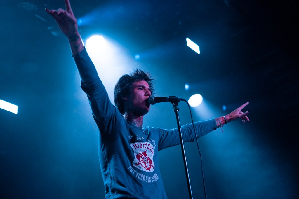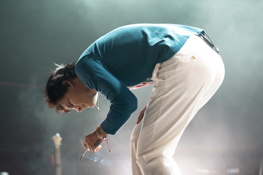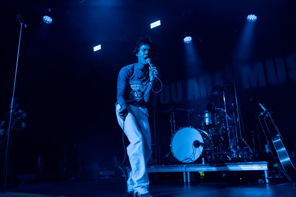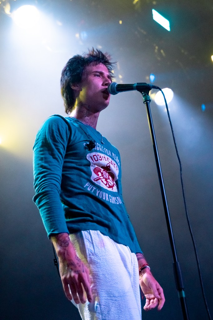 Jaden Hossler, known professionally as JXDN, performed at Brooklyn Steel in New York City on Friday, July 12th. A night filled with energy, passion, and great music, the singer-songwriter and TikTok personality commanded the attention of the whole crowd. With the sign “You are Music” behind him on stage, JXDN moved everyone in the room both physically and emotionally. His lyricism hits hard with heavy themes such as emotional struggles, mental health, relationships, and self-discovery. Playing everything from his first singles to new music off his latest record, “When the Music Stops”, both long-time and newer fans of JXDN were treated to a night they’ll never forget. The NYC audience was very passionate about openers GUNNAR and LØLØ. GUNNAR opened the night with his alternative-pop, soulful style. Pop-punk princess LØLØ, who also first gained traction on TikTok, hyped up the crowd with her cheer-inspired hits. When it was finally showtime, JXDN came out under strobe lights, cigarette perched between his fingers for the first song “Stray”.