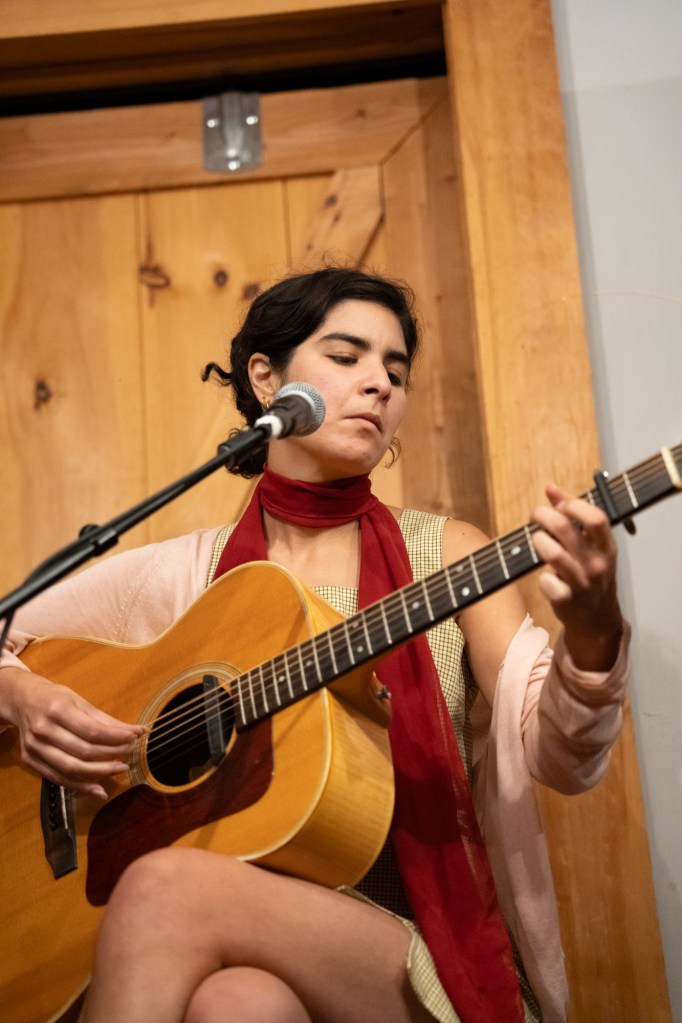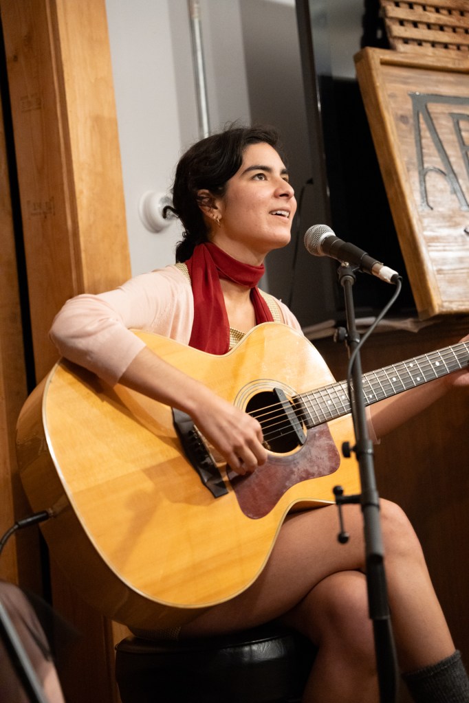 Friday was an intimate, indoor performance in the round, presented by Keepsake House, a NYC-based space for independent musicians dedicated to mixing songwriting with storytelling. Four solo artists from the Hudson Valley and New York City performed in the round to share songs and stories in a small, engaging setting. Artists included Ella Ray Kondrat, Jayla Kai, Jolie Holland, and Miriam Elhajli. Each musician performed one song at a time, answered questions and took turns between performances inside the Cider House at Stone Ridge Orchard.