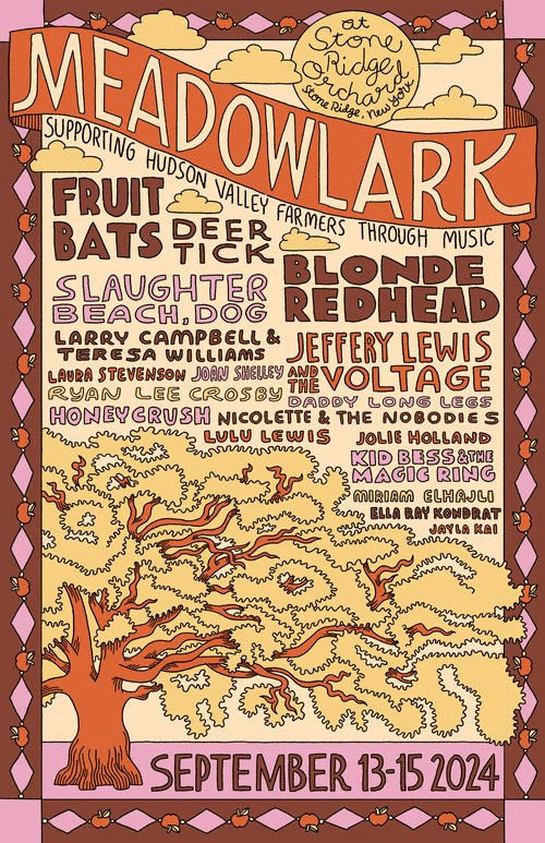 Meadowlark Festival began in 2022 in Stone Ridge, a hamlet in Ulster County. Created as a way to support Hudson Valley and national farmers through music, Meadowlark grows bigger each and every year. Meadowlark brings awareness to Farm Aid, Rondout Valley Growers, and the Hudson Valley Center for Food, Culture, and Agriculture.